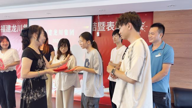 2025年8月25日上午,由福建龙川集团党支部、集团办公室组织开展的职工子女高校入学教育经费补贴发放仪式在会议室举行。集团董事副总裁陈香蕊、副总裁陈芳、工会主席梁爱玲等领导出席了仪式,共有22名职工及高校入学子女参加,仪式由支部书记、副总裁翁秀华主持。